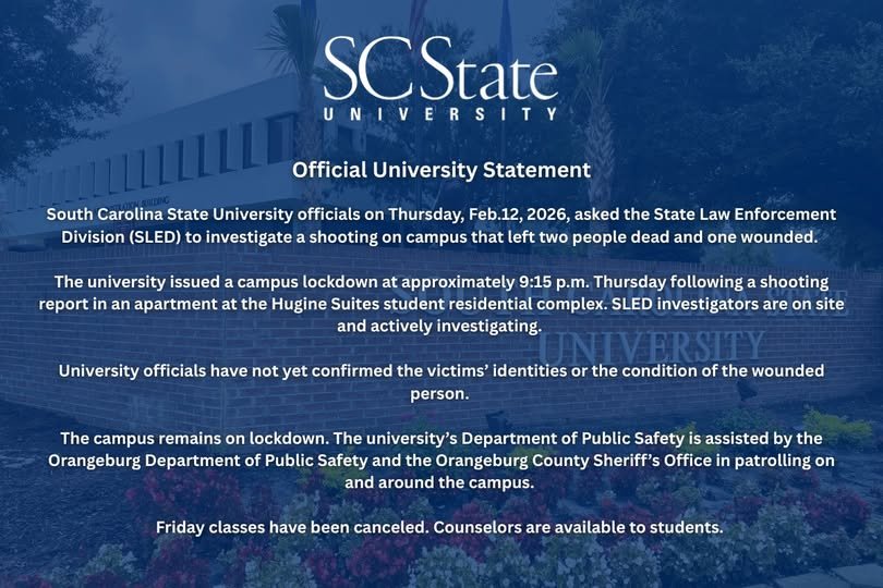 Two people were killed and one other was wounded in a shooting on Thursday night at a dormitory of South Carolina State University, an historically Black college, prompting a campus lockdown, school officials said in a statement.